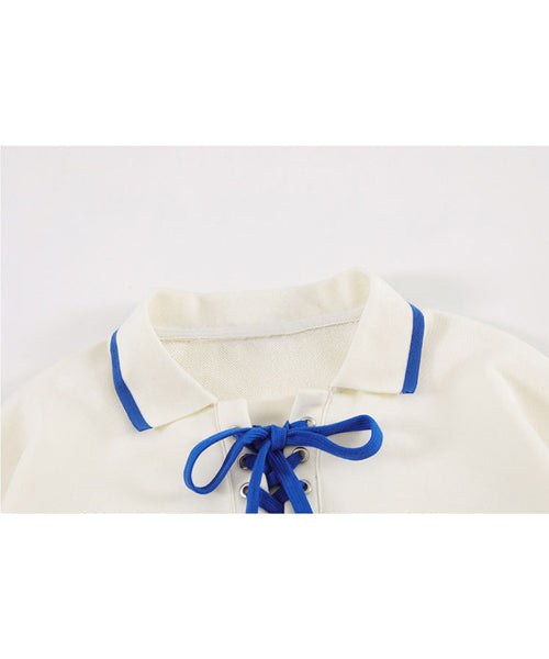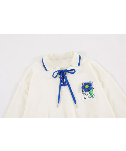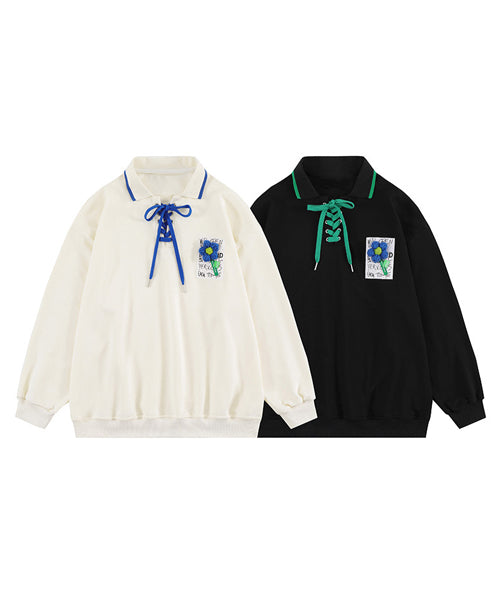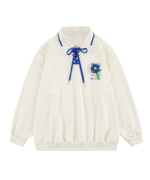 編み上げポロ襟スウェット/14085