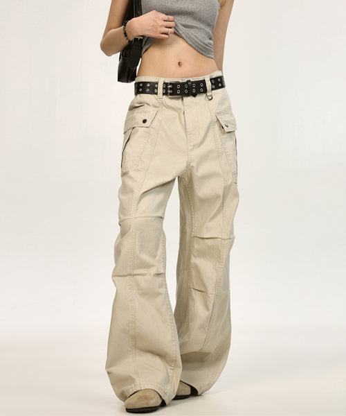 実用性のあるカーゴポケットに加え、Dカンを備えたディティールが無骨さを引き立て、ストリート感のある仕上がりに。