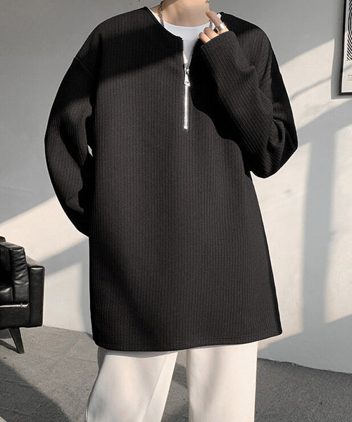 ハーフジップのデザインがアクセントになり、きれいめなスタイルからカジュアルな着こなしまで幅広く活躍。