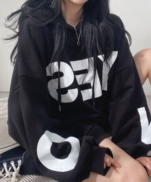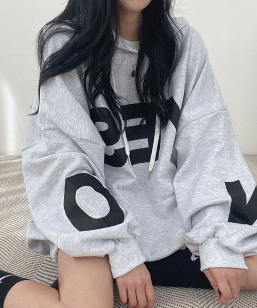 フロントと袖に大胆に施されたロゴデザインがインパクトを放つスウェットパーカー。