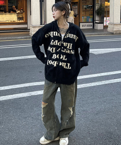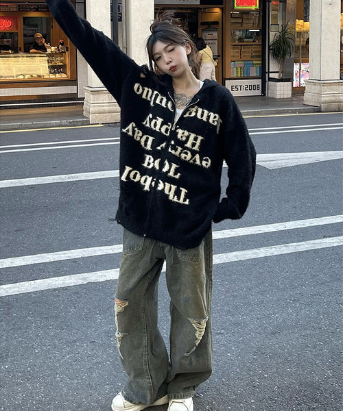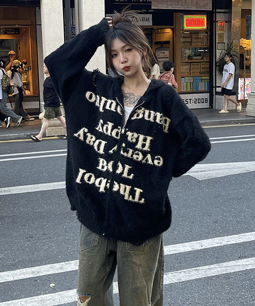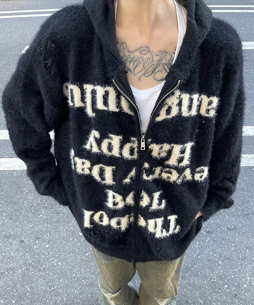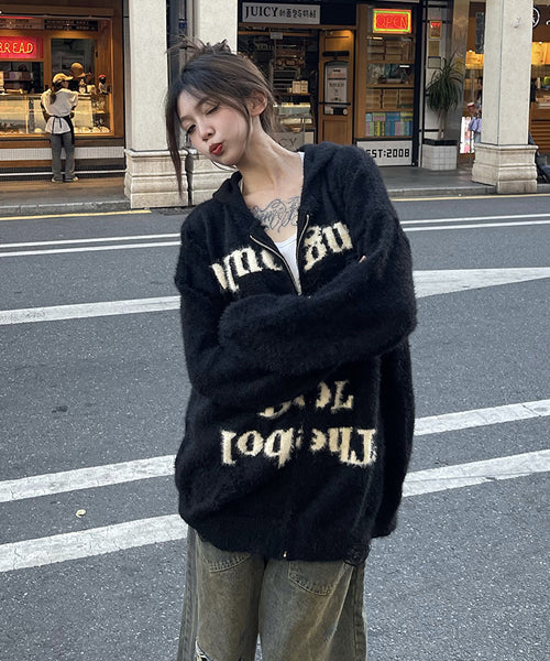 大胆なレタリングロゴがインパクト抜群の主役級ニットパーカー