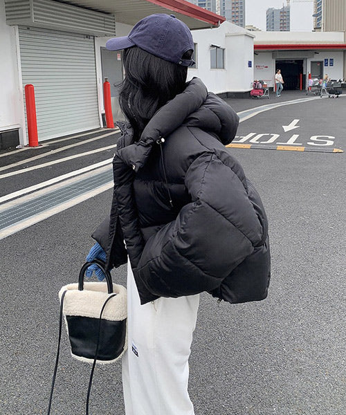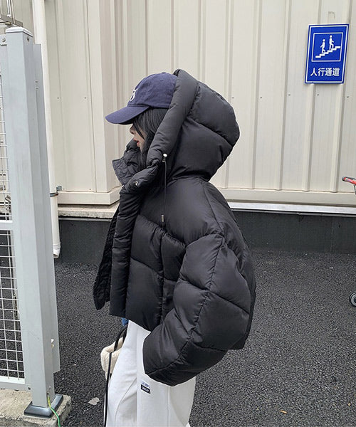 しっかりと高さのあるスタンドネックと、ボリューム感のあるフード付きで防寒対策もバッチリ。