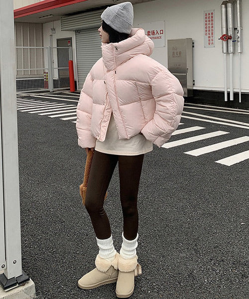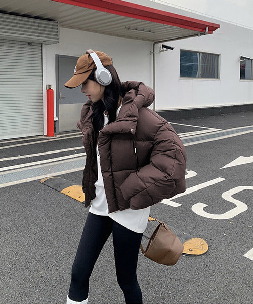 シンプルなデザインで幅広いスタイルで活躍するダウンジャケット。