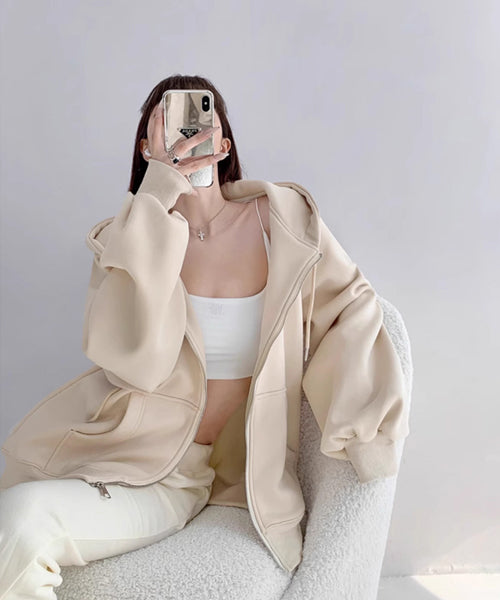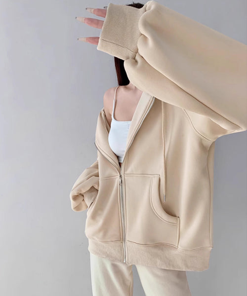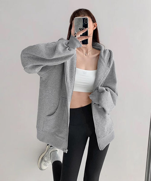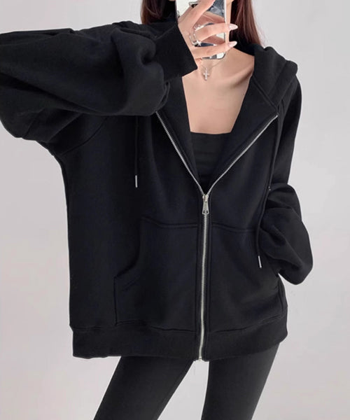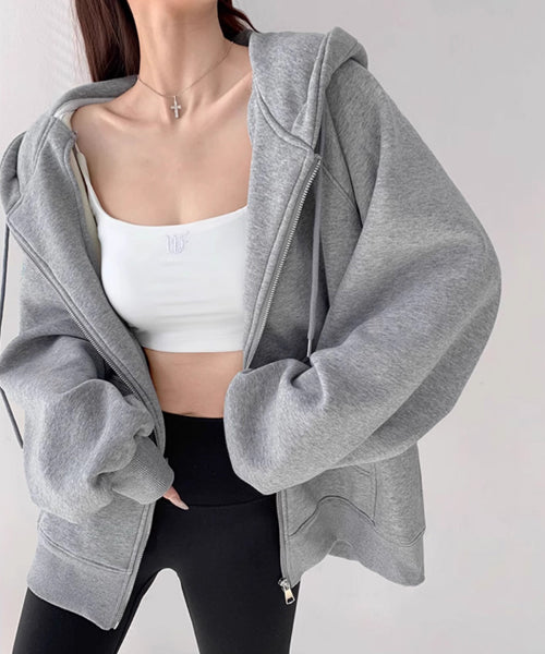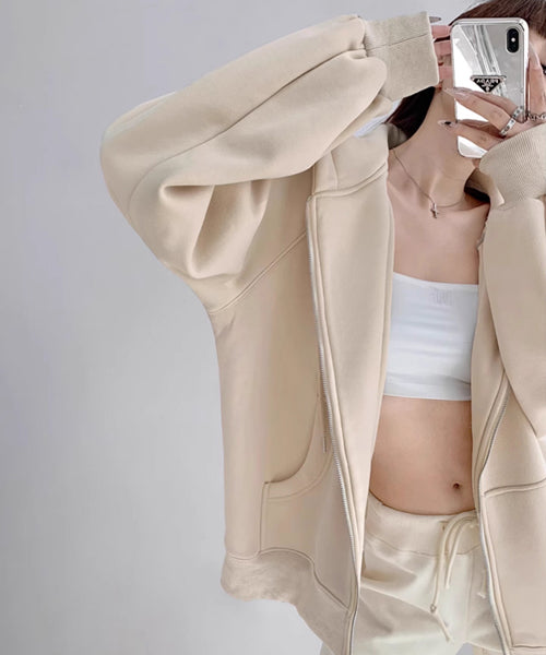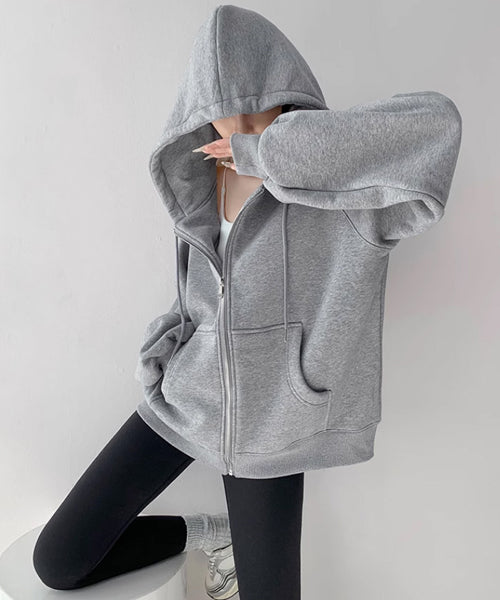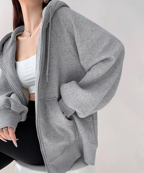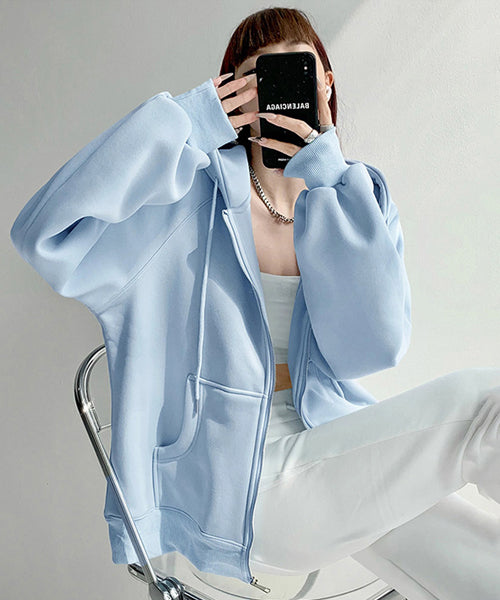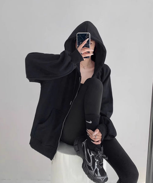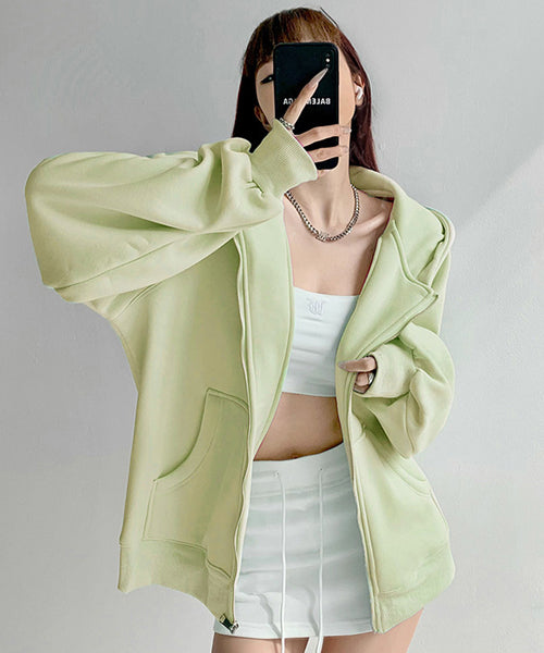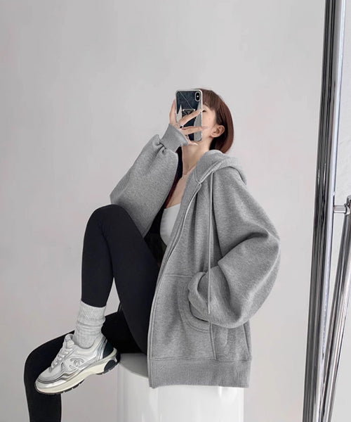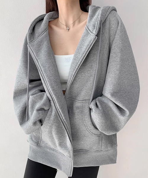 程よくルーズなシルエットが抜け感を演出するジップパーカー