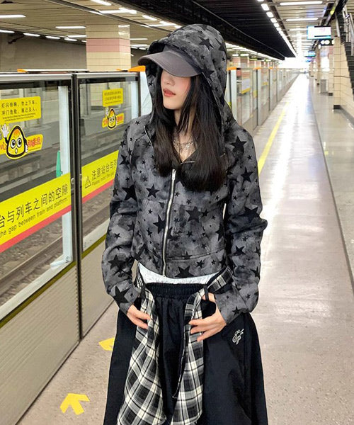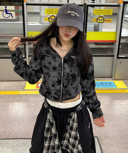 ショート丈シルエットに星柄デザインを落とし込んだ、存在感抜群のスウェットパーカー。