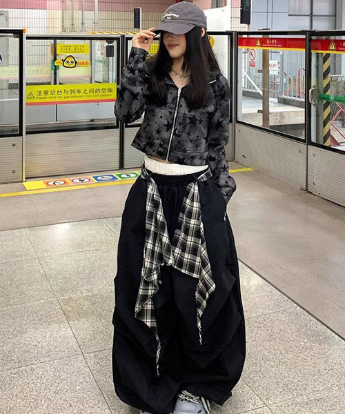 カーゴパンツやワイドデニム、トレンドのフレアパンツやミニスカートなどと組み合わせた現代風なモードスタイルにも◎