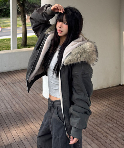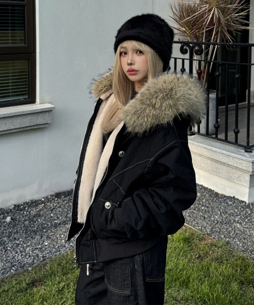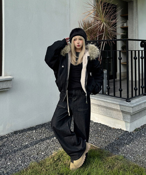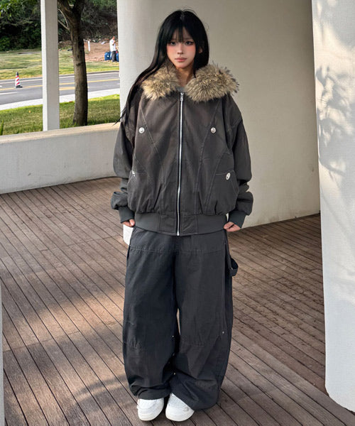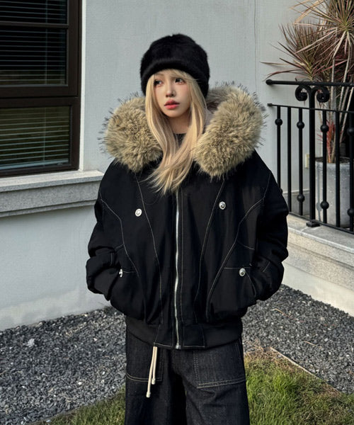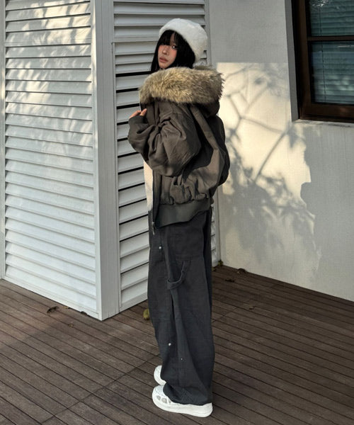 オーバーサイズシルエットに、しっかりとボリューム感のあるファーフードが映える存在感抜群のブルゾン。