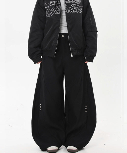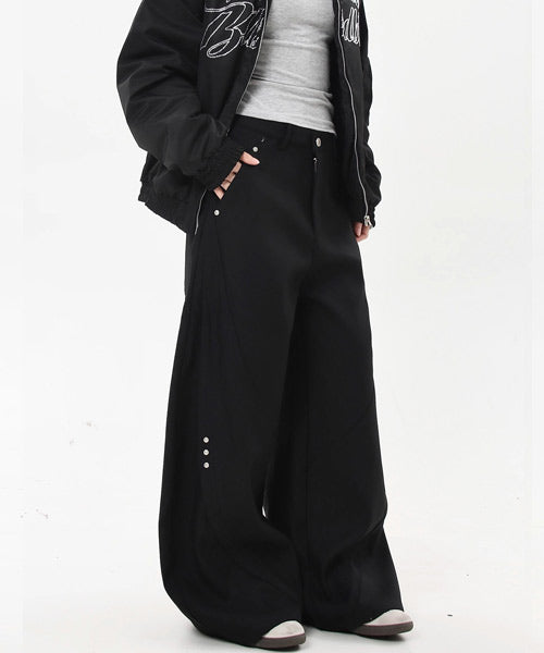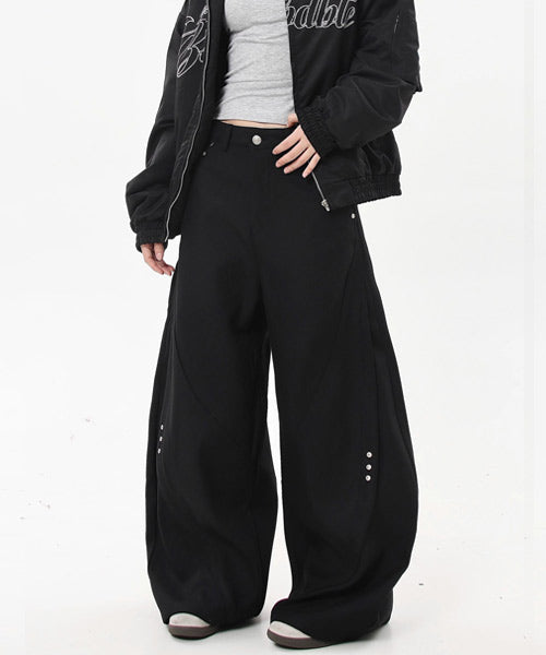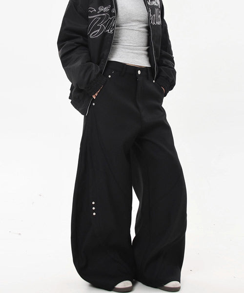 スタッズがエッジを効かせたカーブシルエットパンツ
