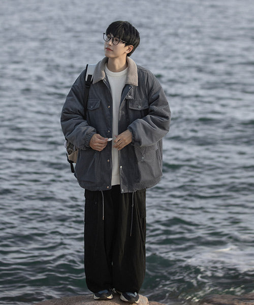 襟のボアが季節感を引き立てる、コーデュロイ素材のブルゾン。