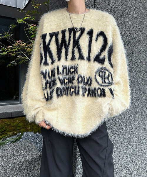 フロントに大胆に施されたロゴが存在感抜群のニット