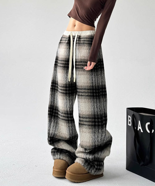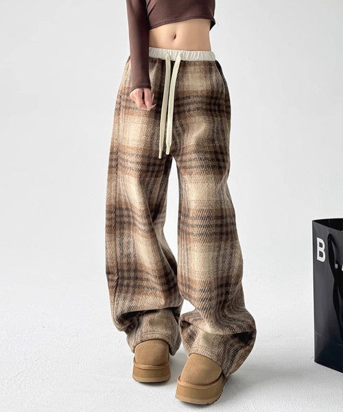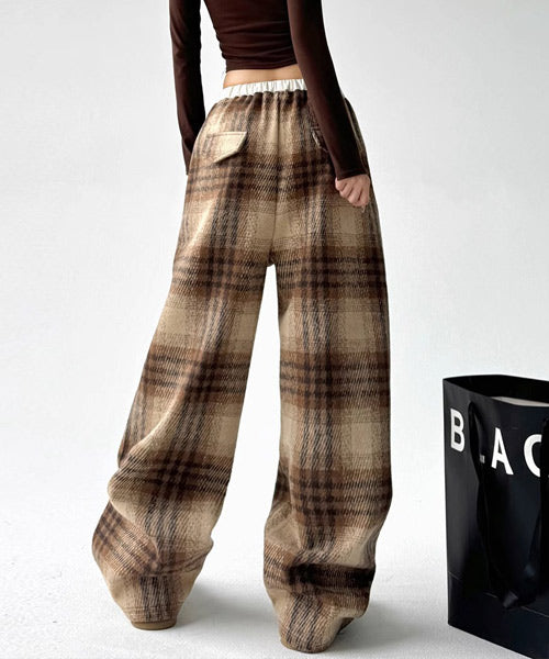 起毛感のある暖かみのある素材とレトロな配色でヴィンテージライクな雰囲気を演出したチェック柄パンツ。