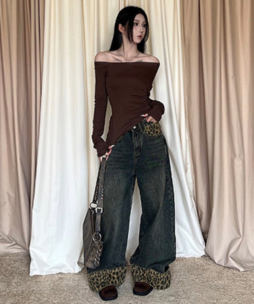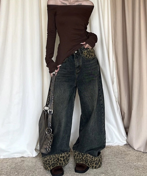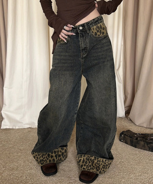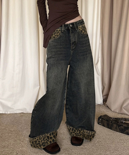 ■ レオパード柄が目を惹くワイドデニムパンツ