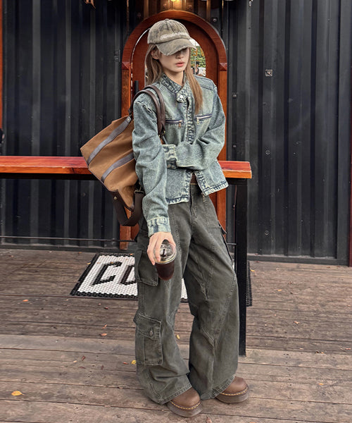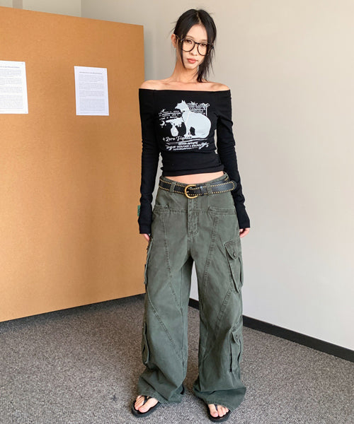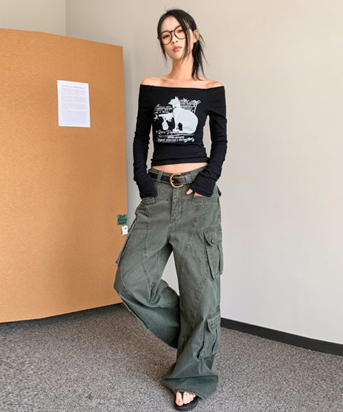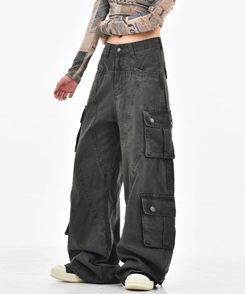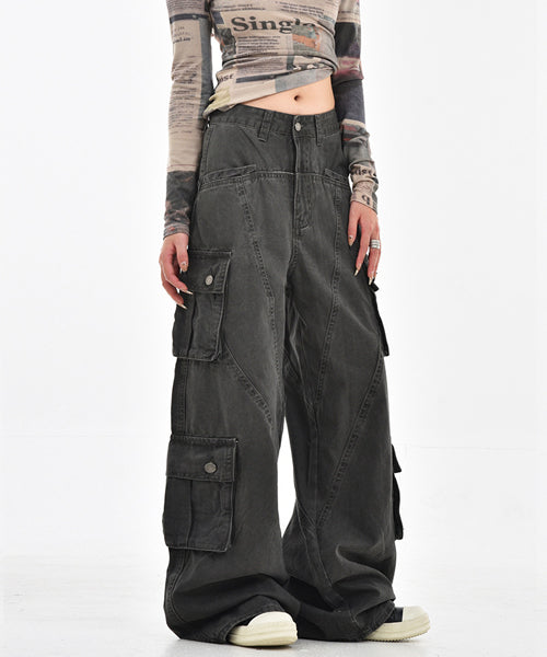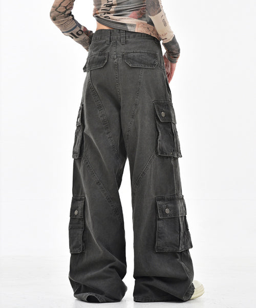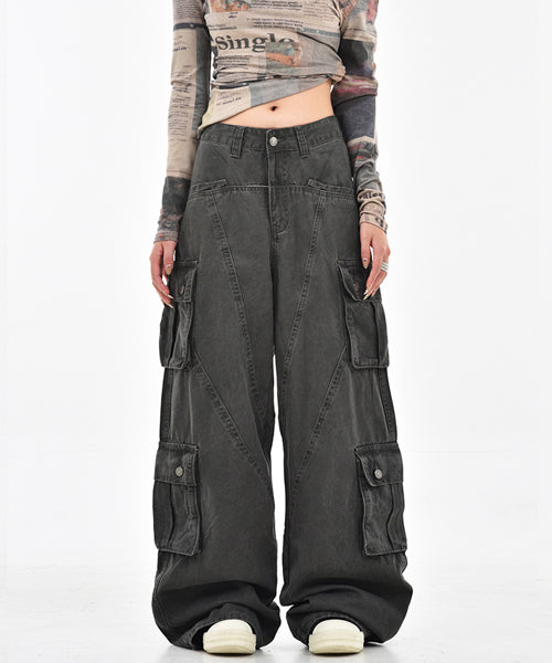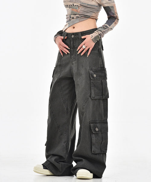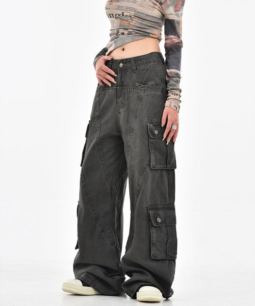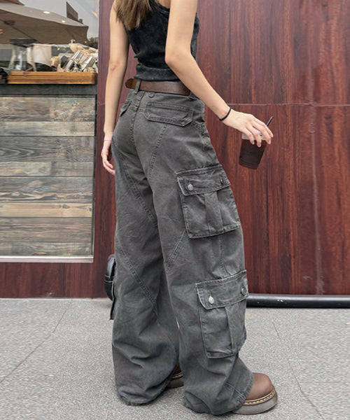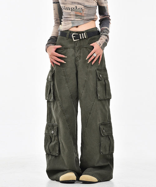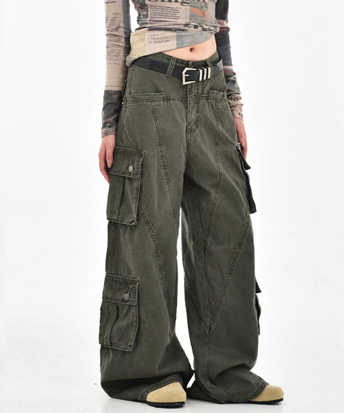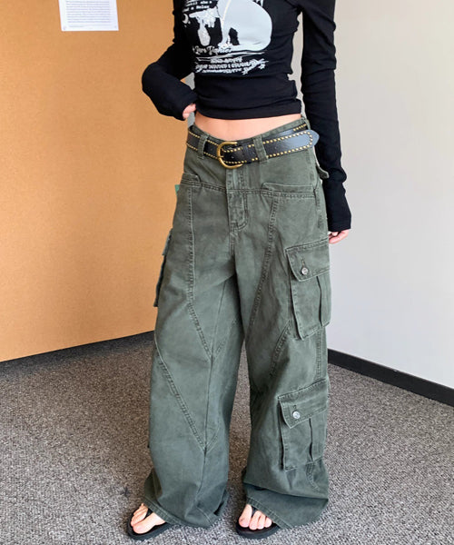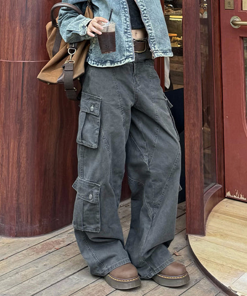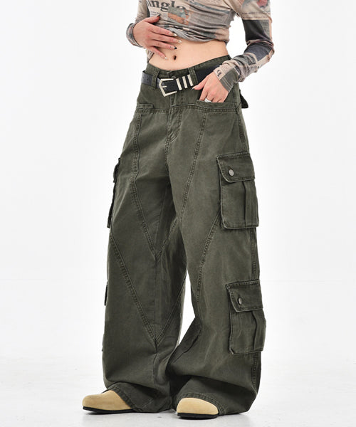 サイドに配置されたカーゴポケットがアクセントになった、ワイドシルエットのカーゴパンツ。