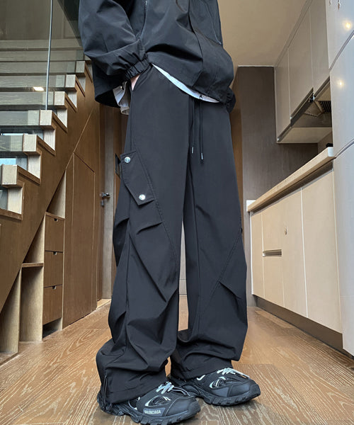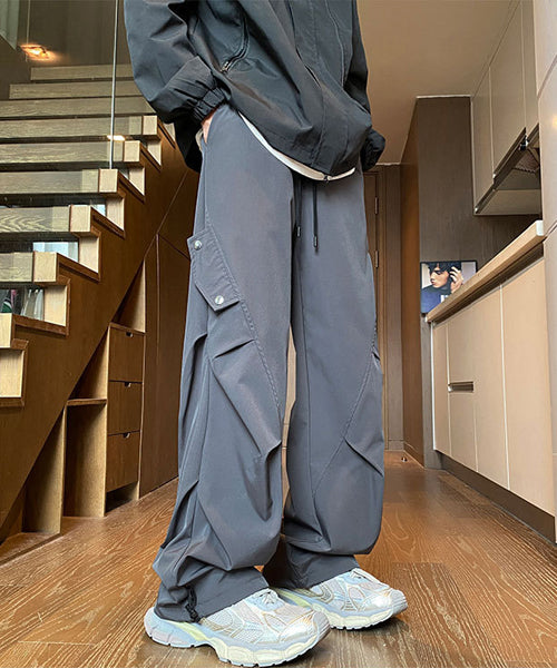 サイドに施されたギャザーが立体感を演出する、ストリートムード漂うカーゴパンツ。