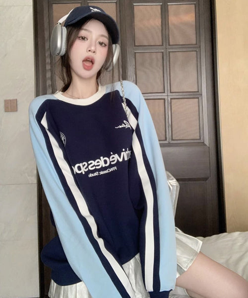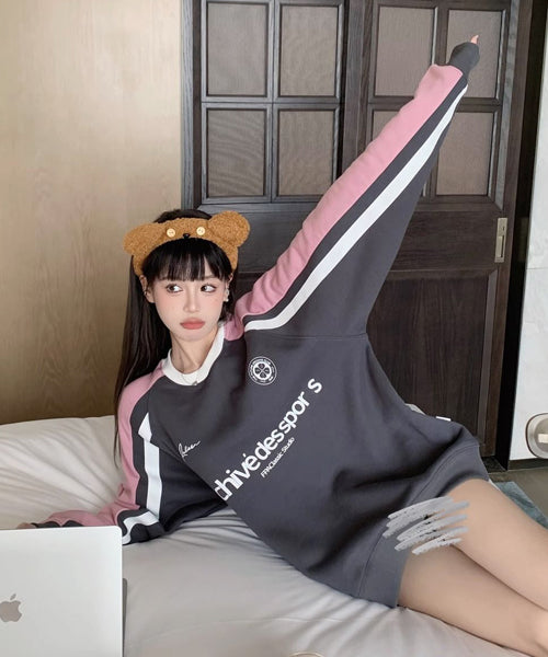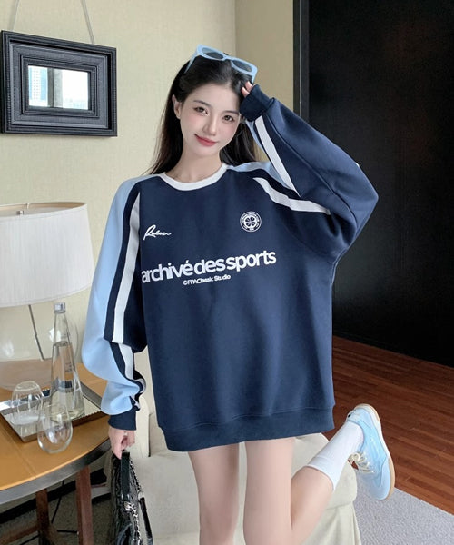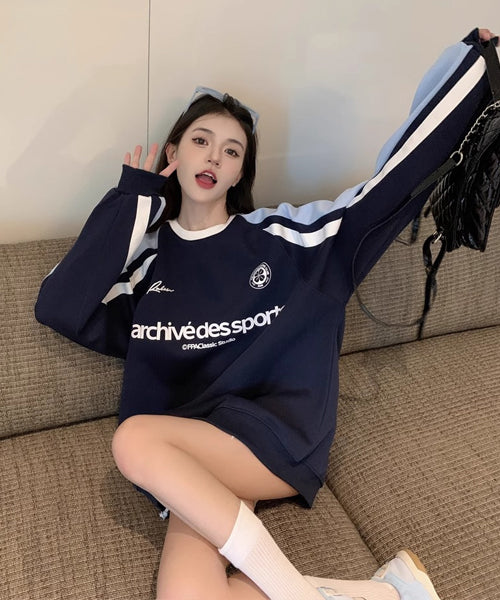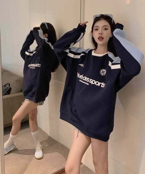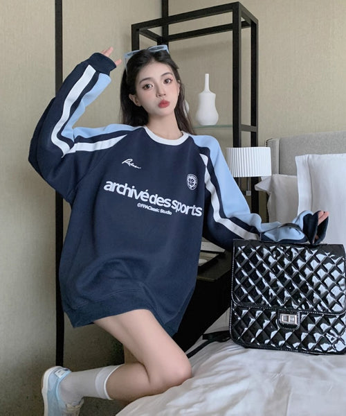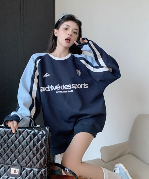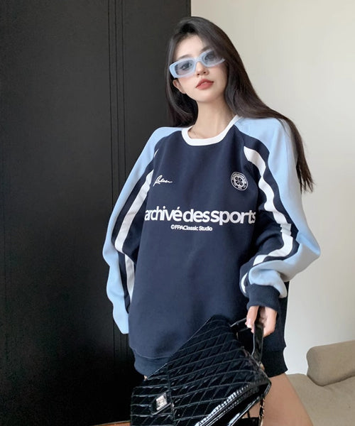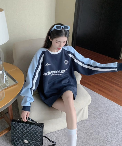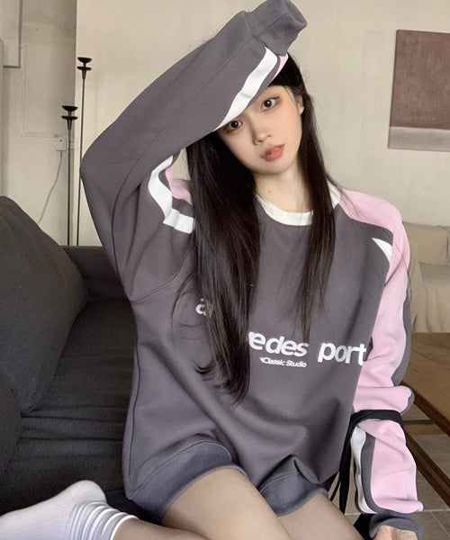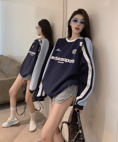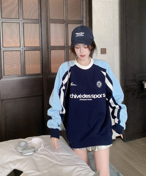 スポーティーなユニフォーム風デザインを落とし込んだトレーナー。