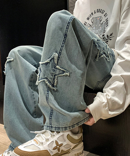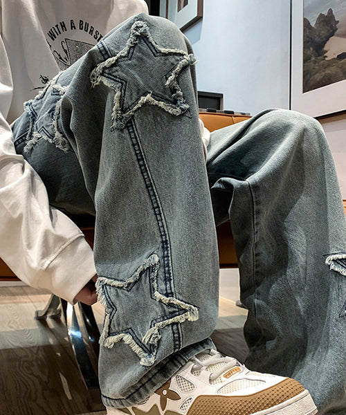 遊び心のある星柄が目を惹く、ルーズデニムパンツ