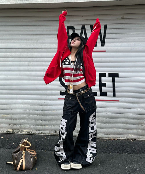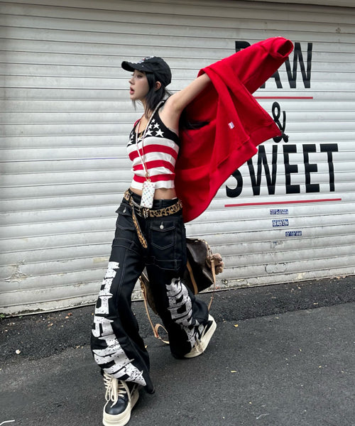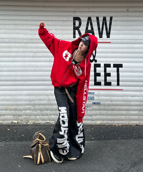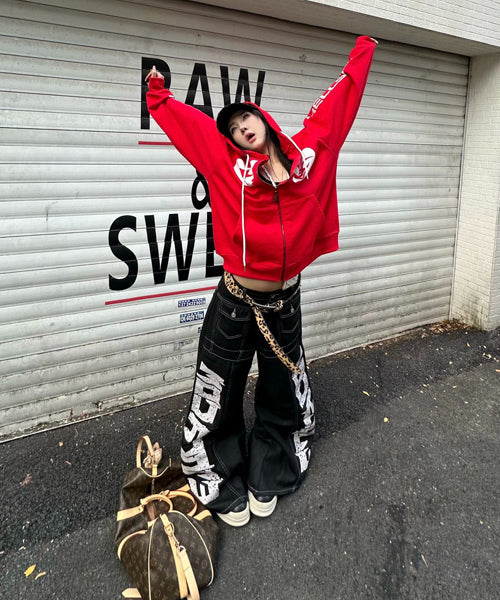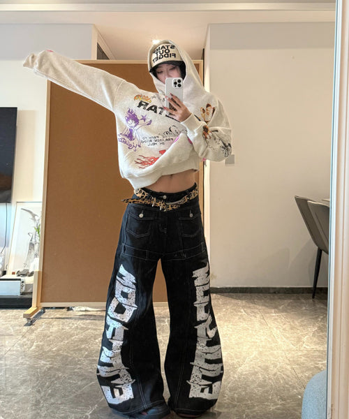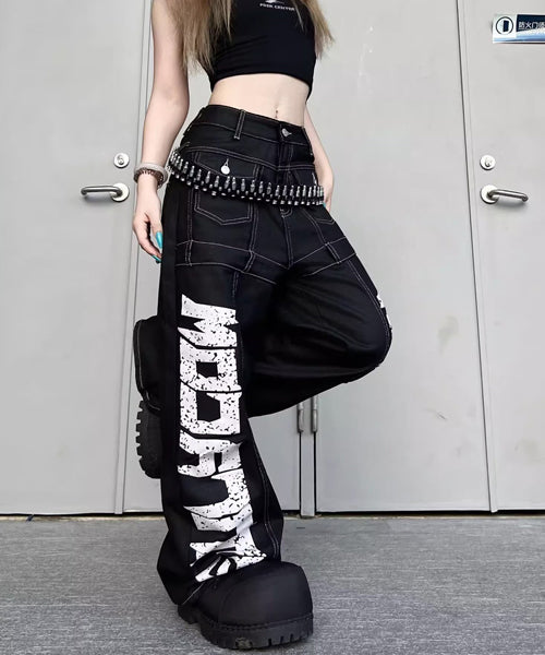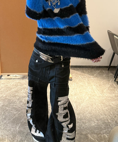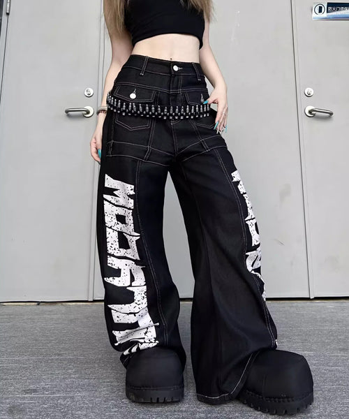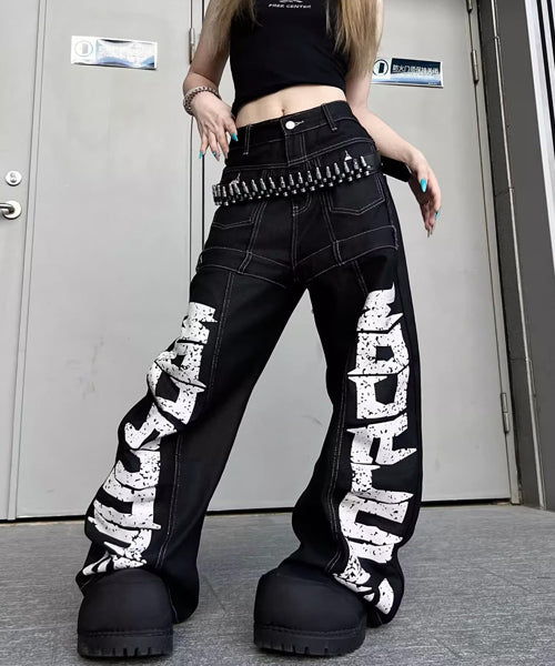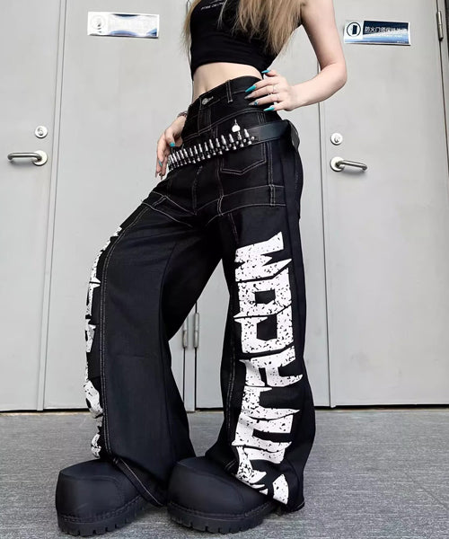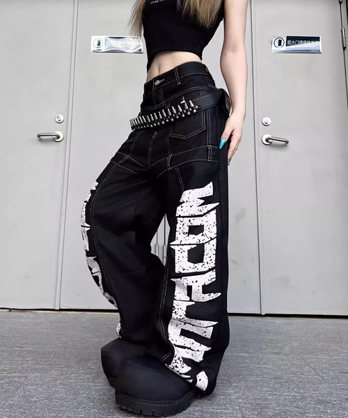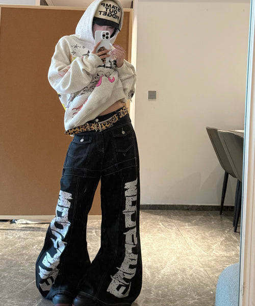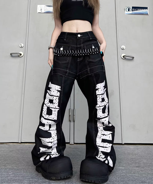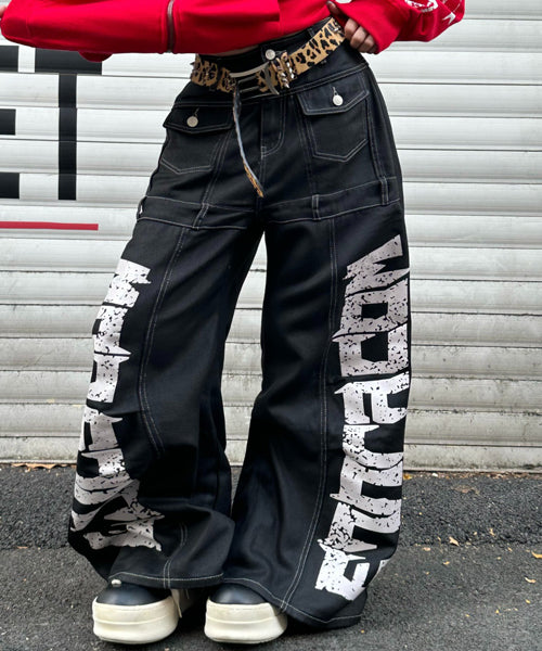 ■ 大胆なロゴデザインが目を惹くワイドデニムパンツ