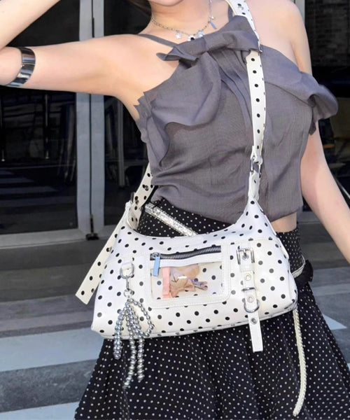 コーデに映えるドット柄ショルダーバッグ