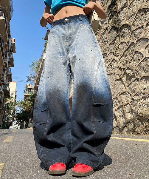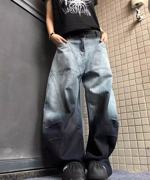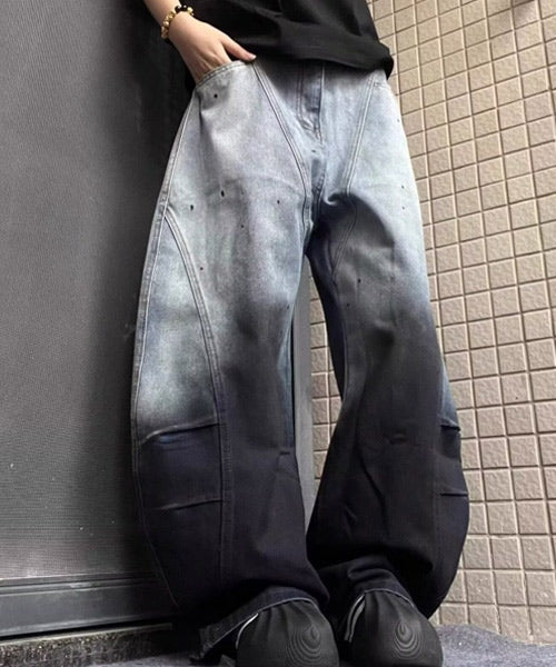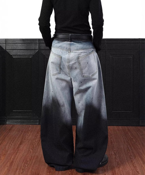 大胆なグラデーションが印象的なワイドデニムパンツ。