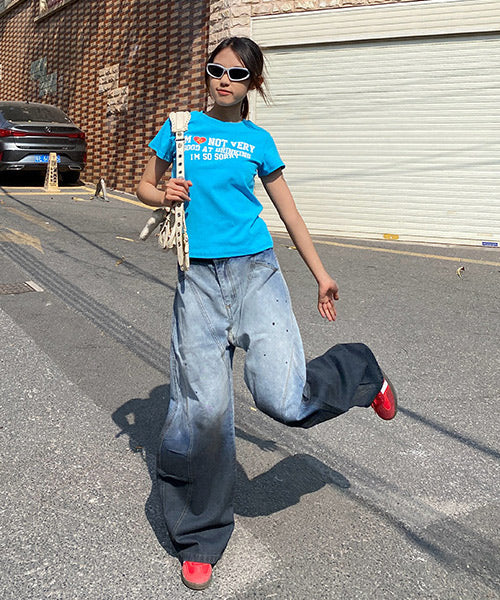 存在感抜群なカラーとシルエットが目を惹くワイドデニム