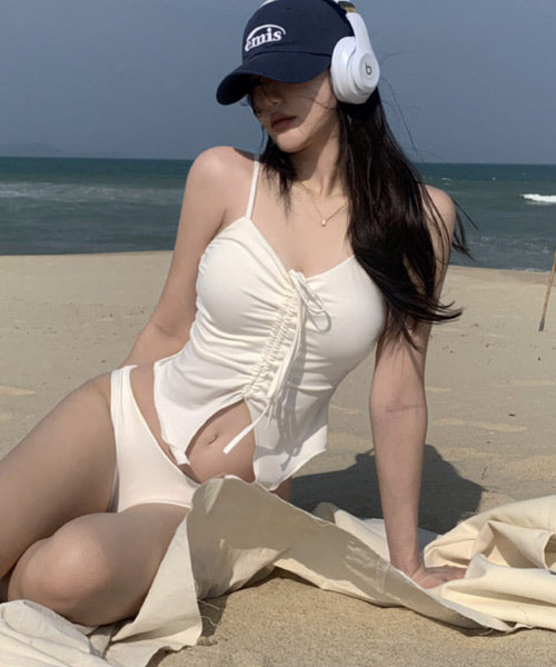 フロントのレースアップが目を惹く水着