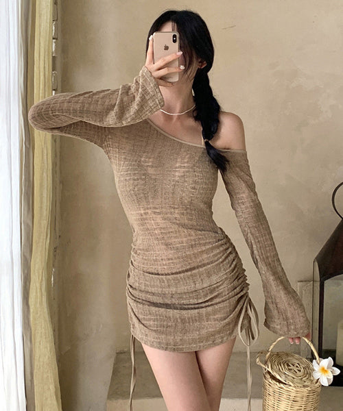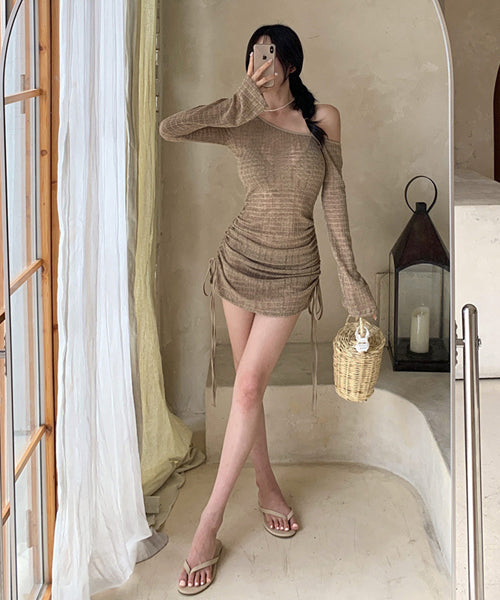 ワンピースで程よく体型をカバーしながら、サイドギャザーがウエストラインをきれいに見せスタイルアップ効果も。